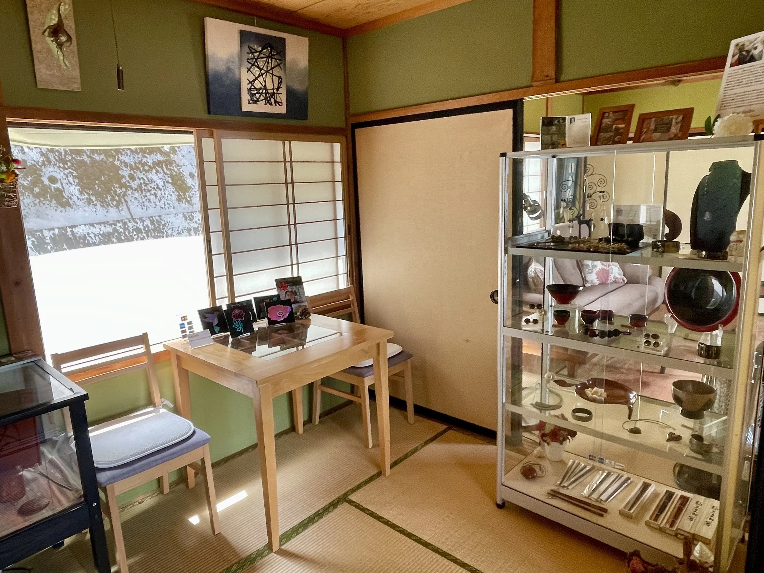 The second floor now houses her studio with a gallery, alongside a maki-e workshop and a welcoming communal area designed for lectures, classes, meetings, or simply sharing tea, conversation, and art on the first floor.